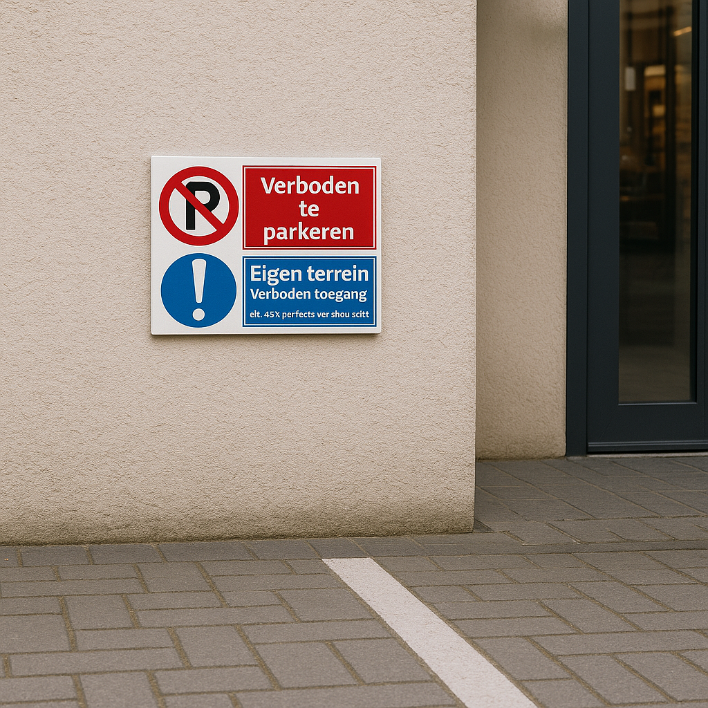 Combinatiebord: Verboden te parkeren / Eigen terrein – Verkrijgbaar als bord of sticker