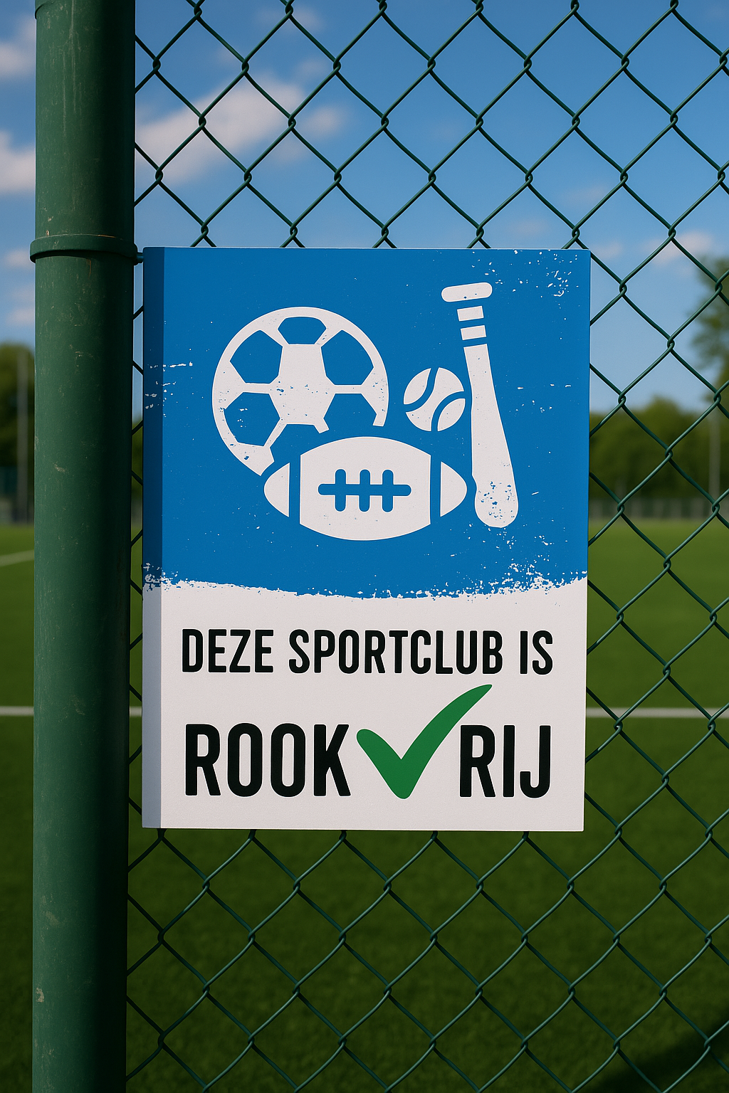 Het “Deze Sportclub is ROOKVRIJ” bord is ontworpen om bezoekers en leden bewust te maken van het rookverbod op uw sportclub. De duidelijke boodschap is eenvoudig te begrijpen en zorgt ervoor dat het rookbeleid altijd zichtbaar is voor iedereen die het terrein betreedt.