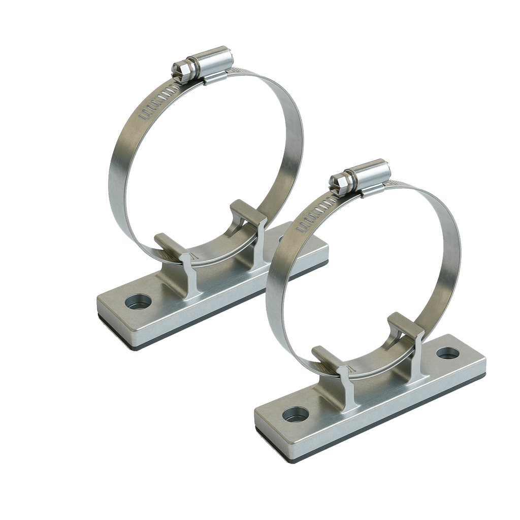 Met deze paalmontage set kunt u eenvoudig en betrouwbaar borden, displays of andere objecten bevestigen aan palen met een diameter van 5 tot 10 cm. De set bestaat uit twee robuuste beugels, vervaardigd uit hoogwaardig roestvrij staal. Dit materiaal biedt uitstekende weerstand tegen roest en weersinvloeden, waardoor de beugels geschikt zijn voor langdurig gebruik, zowel binnen als buiten.