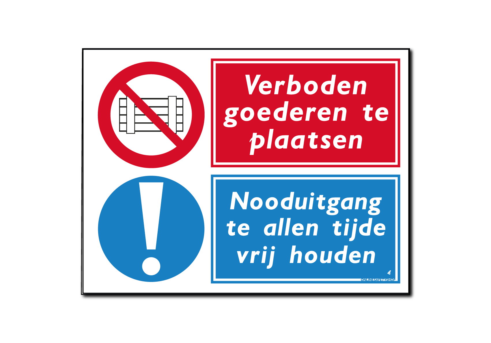 Nooduitgang vrijhouden combi bord en sticker. Onlinesafetyshop.com is de specialist op het gebied van veiligheids- en gezondheidssignalering. We hebben alle middelen in huis om specifieke klantwensen toe te passen op onze producten. Heb je een specifieke maat in gedachten of een pictogram dat er niet tussen staat? Dan gaan we gelijk voor u aan de slag.