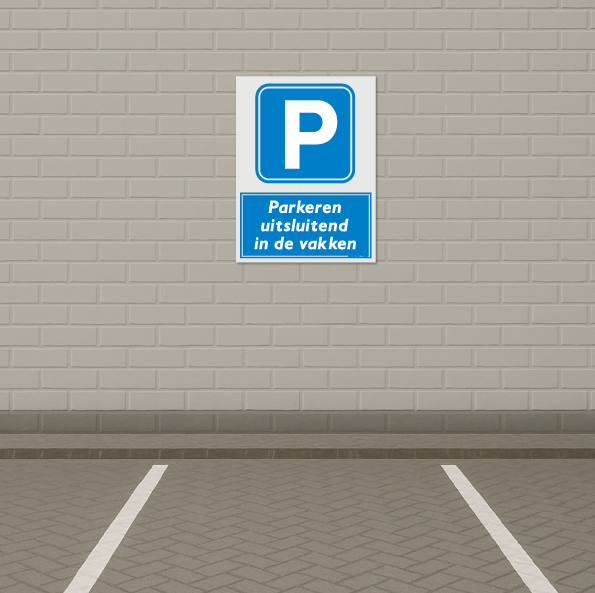 Koop borden en stickers voor parkeren uitsluitend in de vakken bij Onlinesafetyshop.com. Verschillende maten en materialen beschikbaar, voldoet aan Nederlandse en Europese veiligheidsrichtlijnen.